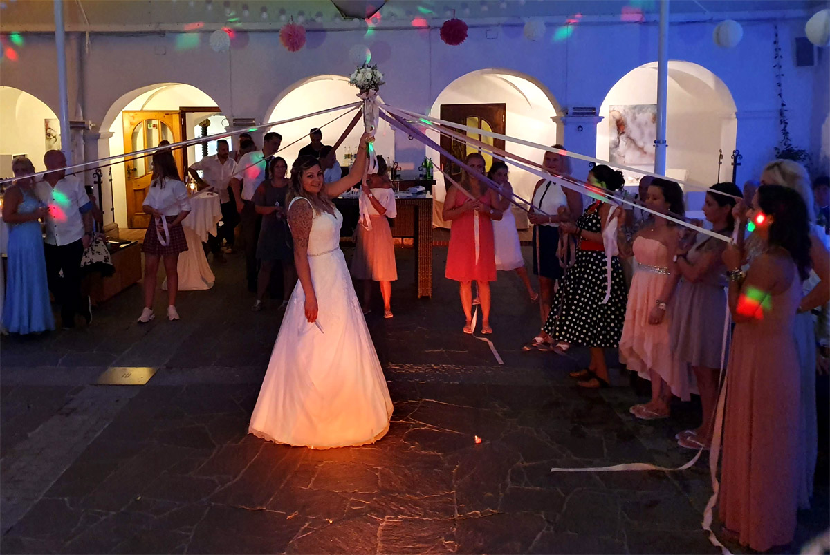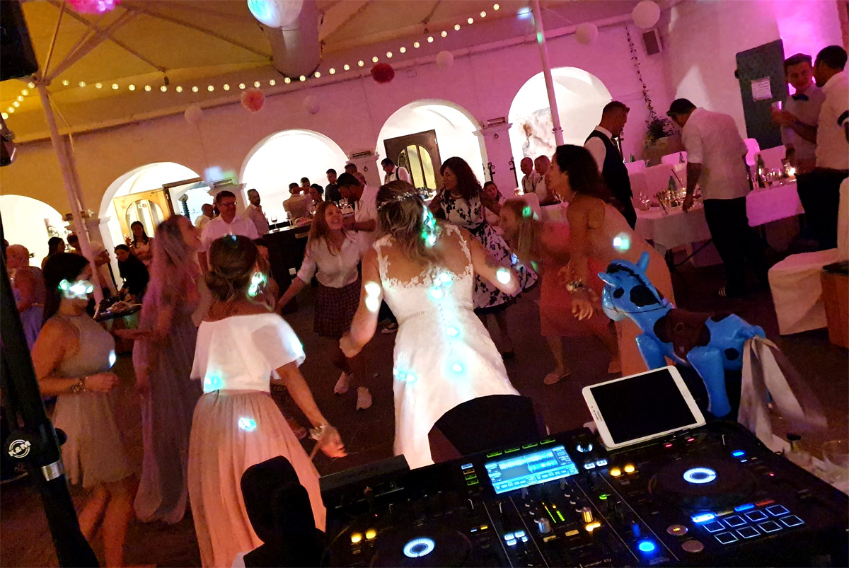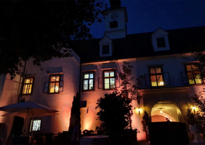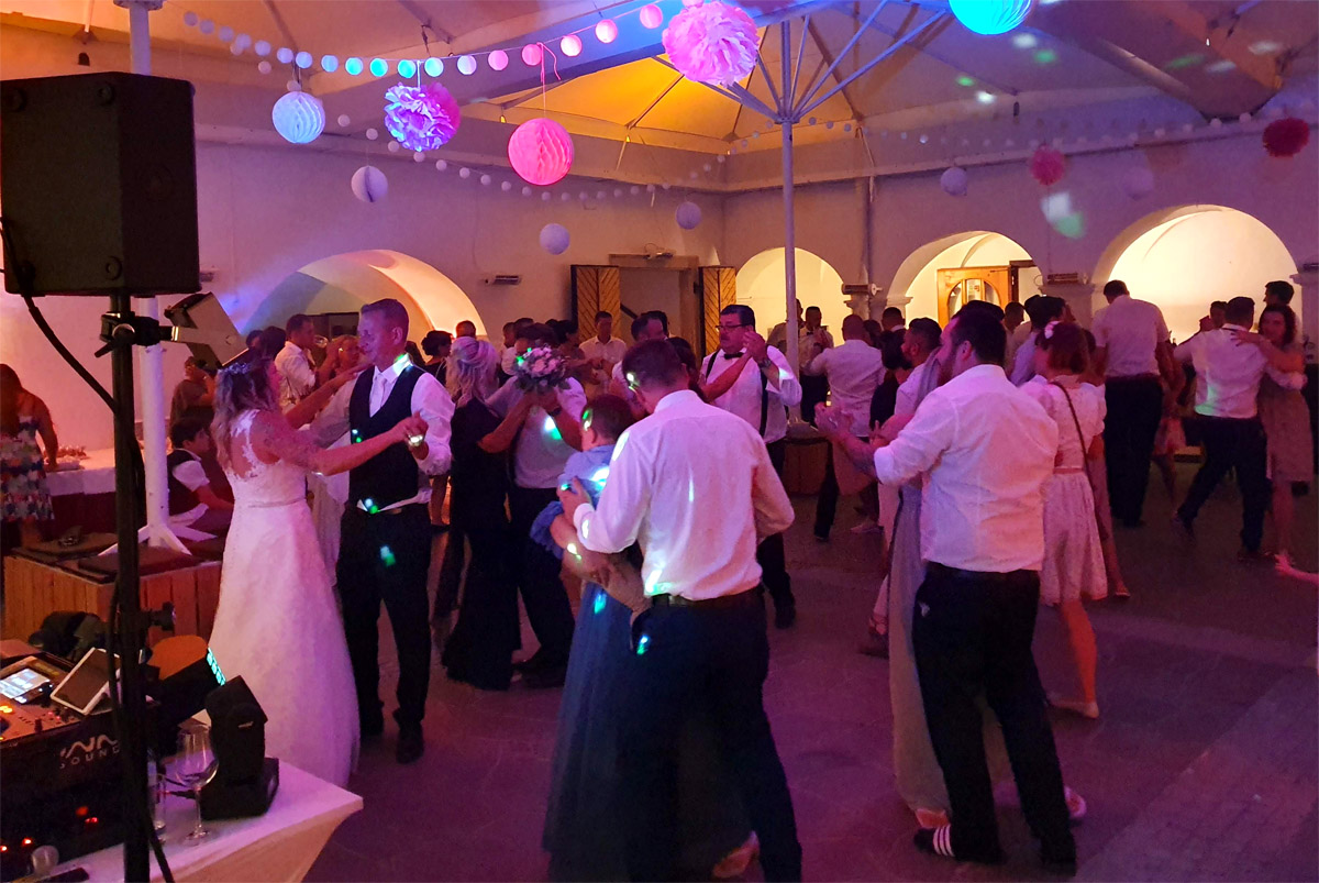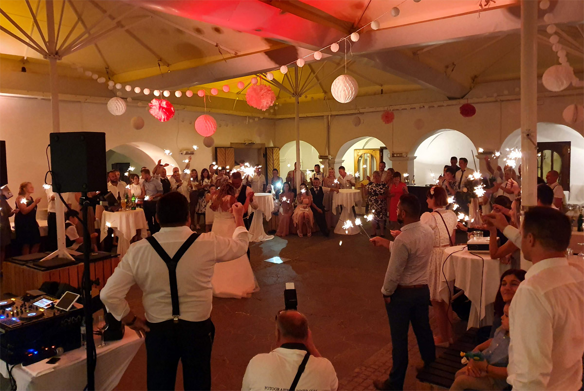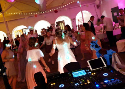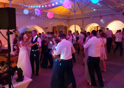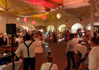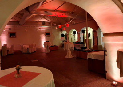 Umfang: Tonanlage, Lichtanlage, DJ mit Moderation, zusätzliche Lautsprecher für die Trauung und Dekolicht zur Schlossbeleuchtung