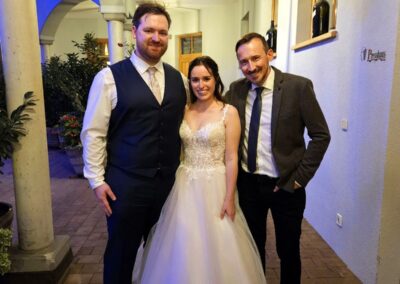 DJ Markus hat unsere Hochzeit im Weinschloss Thaller einfach super begleitet! Schon während dem Abendessen hat er die passende Hintergrundmusik abgespielt und er hat die wichtigen Programmpunkte super moderiert. Die Musik wurde immer passend zur Stimmung auf der Tanzfläche angepasst und alle Musikwünsche von uns wurden im Laufe des Abends abgespielt. Zusätzlich bekamen wir Fotos und Videos, die von der DJ-Sicht aufgenommen wurden. Danke für diese schönen Schnappschüsse und Momente, Markus! Wir waren sehr begeistert und würden ihn und sein Team zu 100% weiterempfehlen!