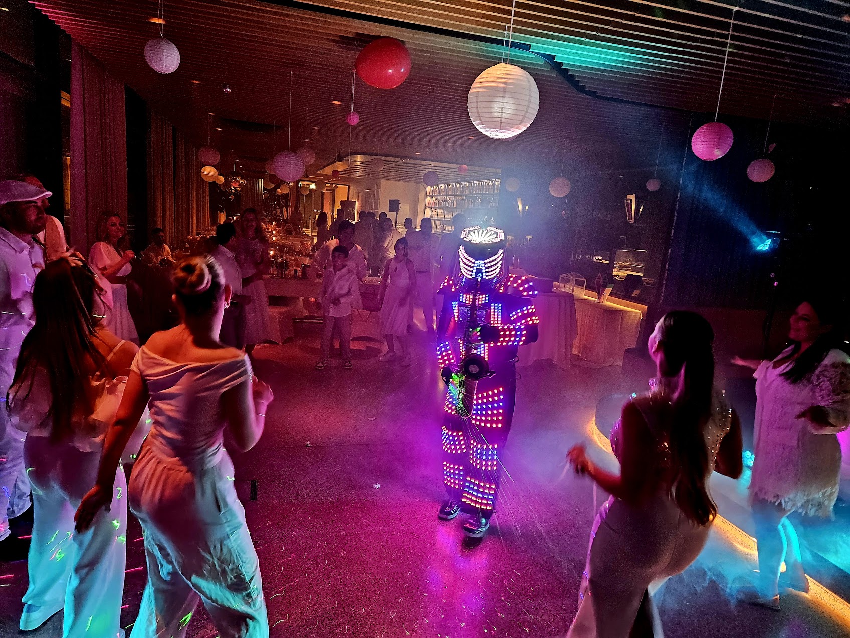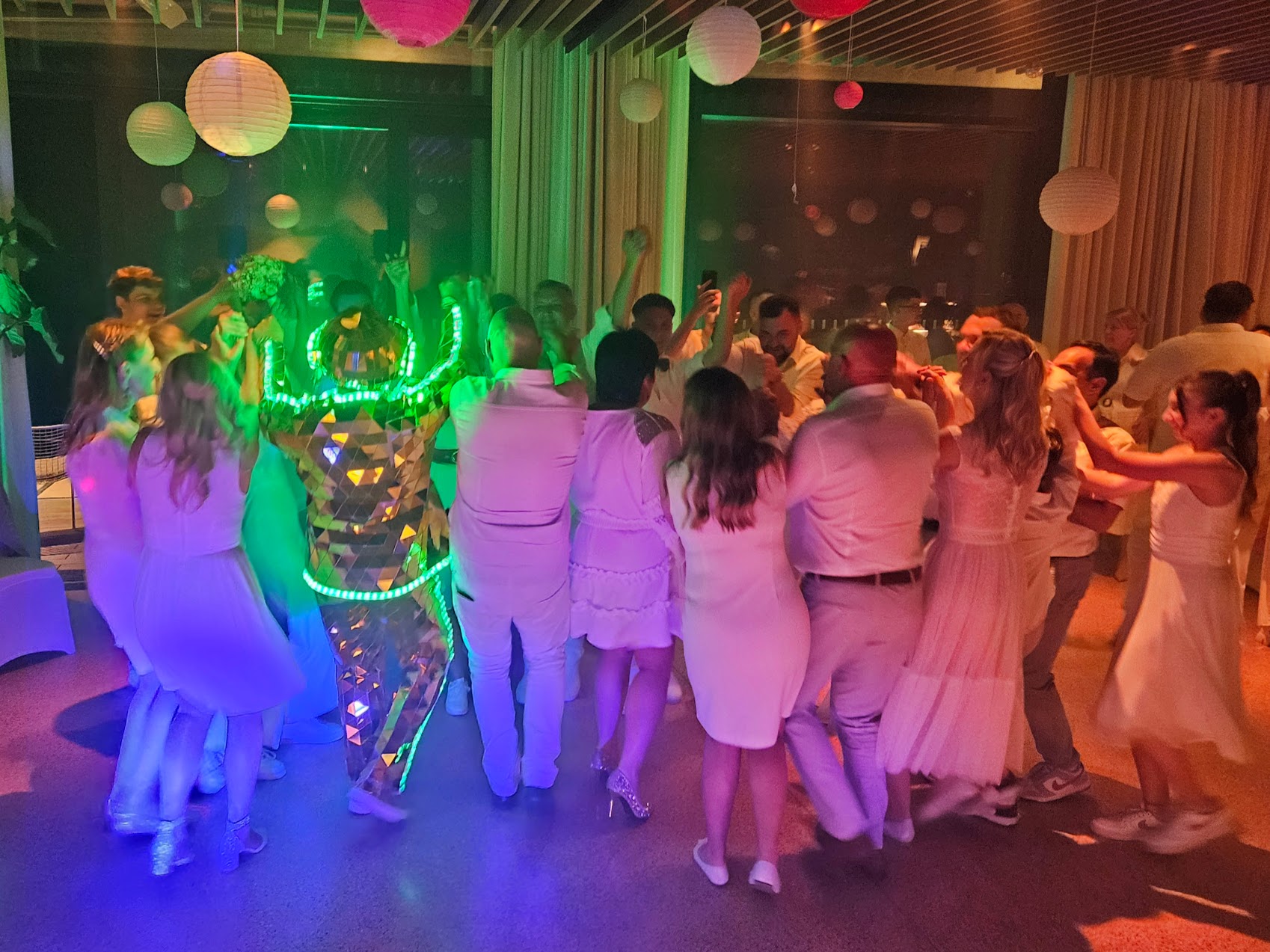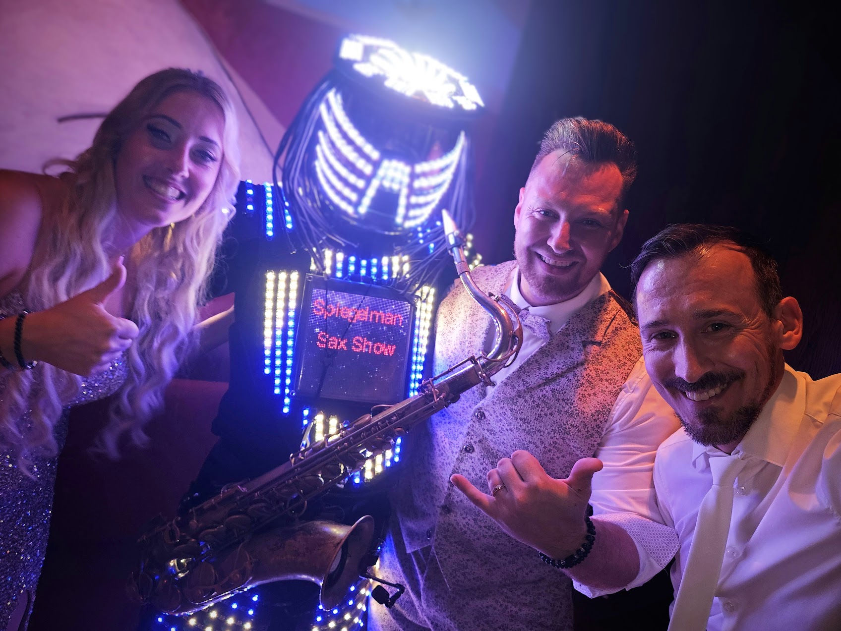 Hier trifft mitreißende DJ-Musik, die eure Party zum Kochen bringt, auf eine energiegeladene Live-Saxophon-Performance. Der Spiegelman mischt sich mitten unter die Gäste, tanzt, spielt und begeistert mit futuristischen Outfits, stimmungsvollen Lichteffekten und einer mitreißenden Performance, die für Gänsehaut sorgt – ein Wow-Moment, der allen lange im Gedächtnis bleibt.